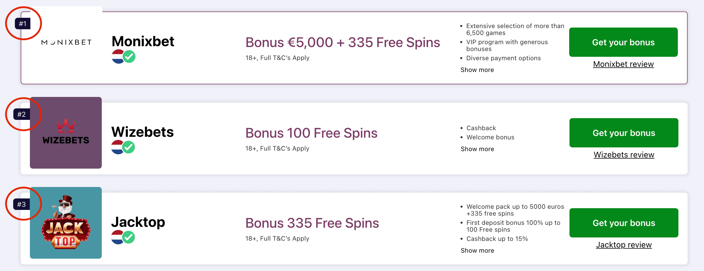 Podczas gdy bonusy są selekcjonowane ręcznie — albo bezpośrednio ze stron kasyn, albo dostarczane przez same kasyna — to zapewnia, że promocje, które wyróżniamy, naprawdę odzwierciedlają najlepsze dostępne oferty. Nasza współpraca z tymi kasynami opiera się na szybkiej wymianie informacji, ale nie wpływa to na nasz proces przeglądu. Ściśle przestrzegamy obiektywnych ocen, aby zapewnić, że nasze recenzje pozostają bezstronne i godne zaufania. To przejrzyste podejście nie tylko sprawia, że nasze treści są aktualne, ale także wzmacnia naszą wiarygodność w krajobrazie kasyn slotowych online.
